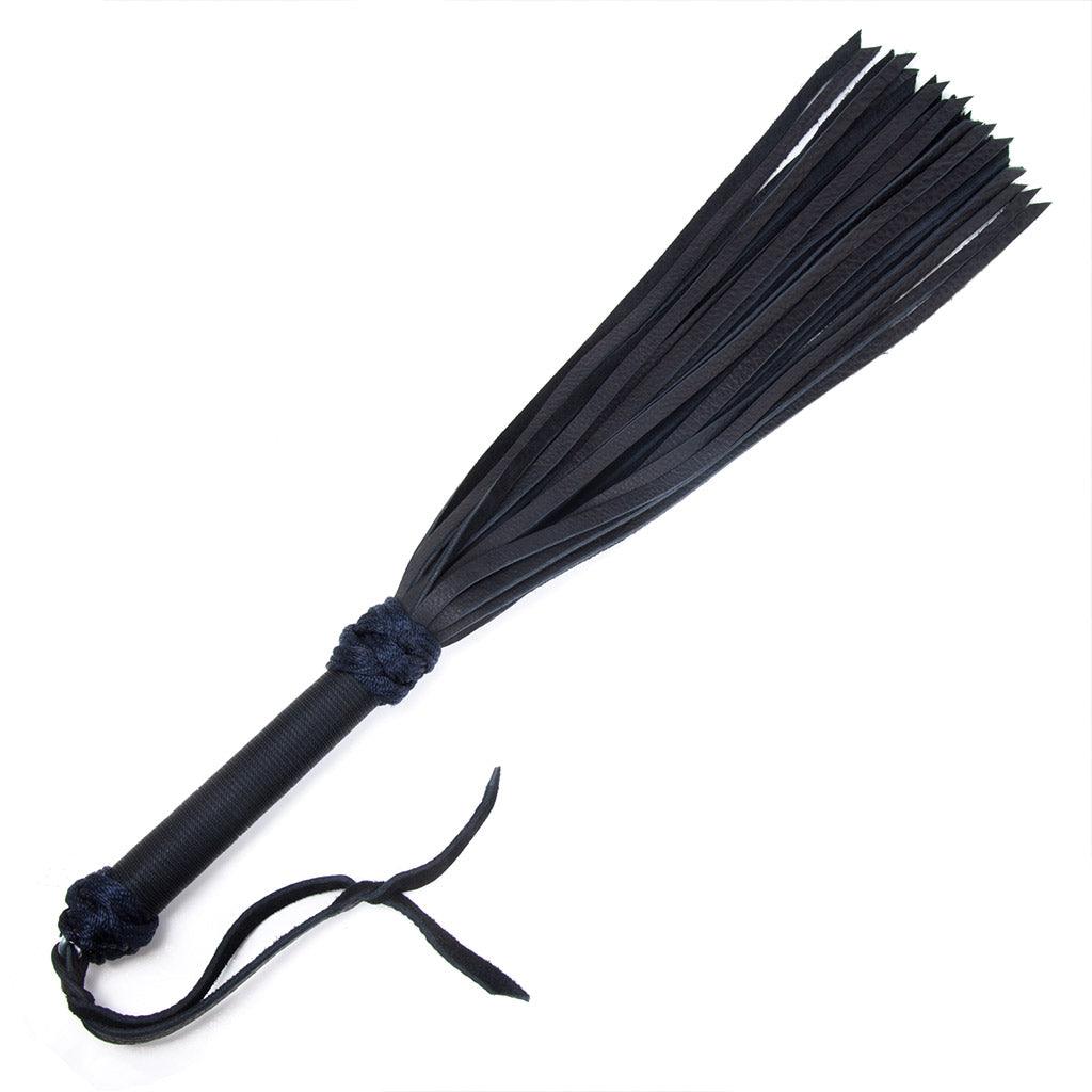 For the flogger connoisseur, this 30” Elk Hide Flogger with intricate handle detailing is a stunning addition to any collection. The dyed black elk hide is luxurious, thick and spongy with straight cut tips, making it perfect for sensual play. However, put a bit of muscle into your throw and this flogger delivers a smacking thud as well. The leather wrapped steel rod handle is wrapped in alternating colors of nylon cord, and topped with a nylon cord Turk’s Head knot. A leather wrist strap is attached.