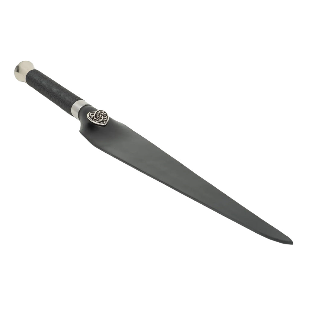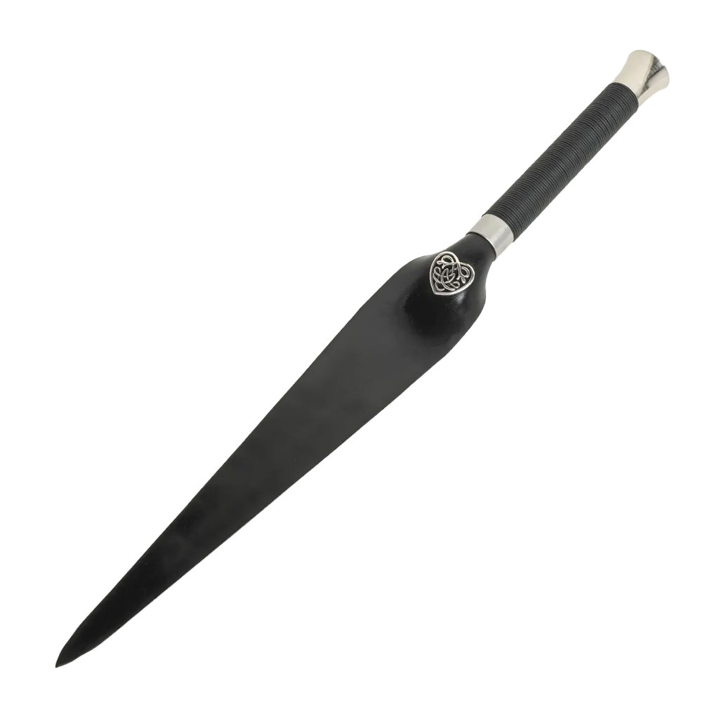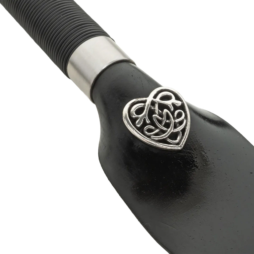 Delight your partner with the Tikki Dragon Tongue. This 24-inch rubber slapper is a great addition to anyone's pleasure chest. This toy features a 2.5-inch-wide taper with a pointed end to deliver the sting during punishment and discipline, a Celtic heart concho and a textured 8.5-inch rubber handle with stainless steel accents. Apply some latex shine for a wet look and enhanced sensations. After a session, this tool can be hand washed using mild soap and water.