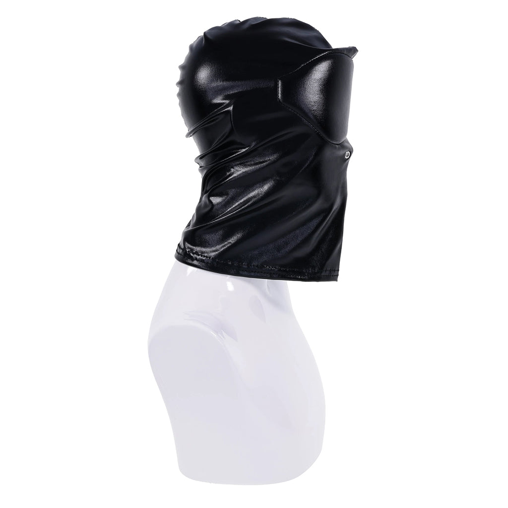 Disappear. Submit. The Edge® Black Out Hood erases identity and heightens every sense. Crafted from a sleek stretch material that molds to every contour, this full-coverage hood is built for comfort and complete sight deprivation. Extra padding surrounds the eyes, with contoured divots that allow them to remain open while keeping vision fully obscured. Two silver metal grommet nose vents maintain airflow through extended wear, while reinforced stitching ensures strength through every command and surrender. Designed for sensory deprivation and total submission, the Black Out Hood invites you to disappear completely and give in to control.