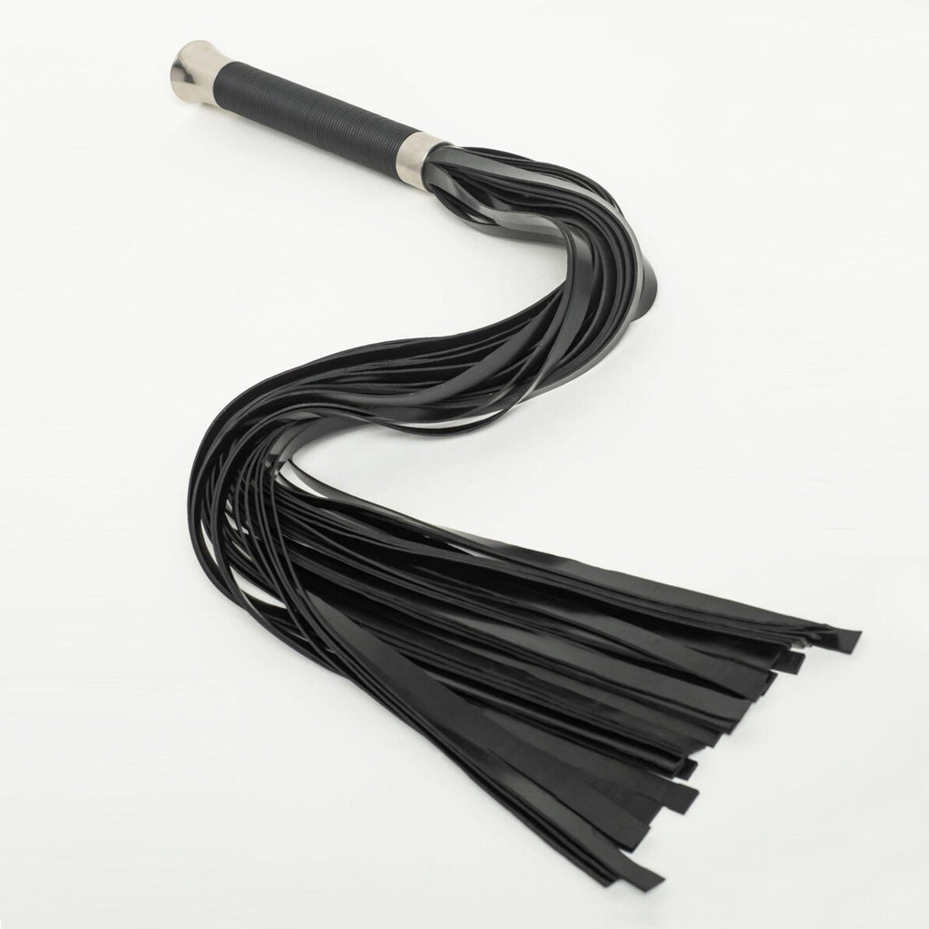 The Lumina Flogger combines balanced design with advanced functionality for a premium experience. Featuring 26-inch-long rubber falls, it delivers a hard impact while maintaining precision and control. the overall length is 35-inches with an 8.5-inch handle. the handle has stainless steel accents and features a metal core for perfect balance. Crafted with exquisite attention to detail, this flogger is designed to meet the needs of enthusiasts seeking both performance and style.